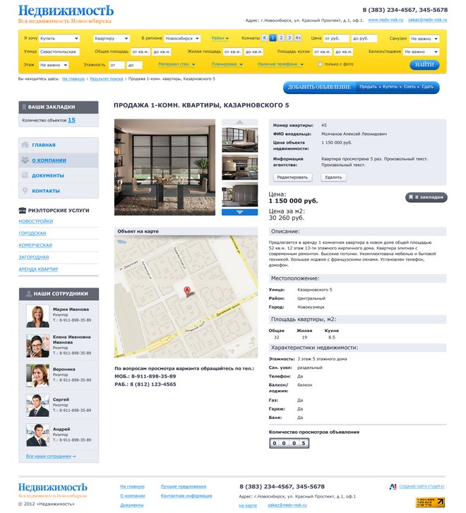 Задачей для агентства недвижимости «НСК» было создать не простой сайт агенства, а настоящий портал по купле-продаже недвижимости, объединенный с услугами риелтора.